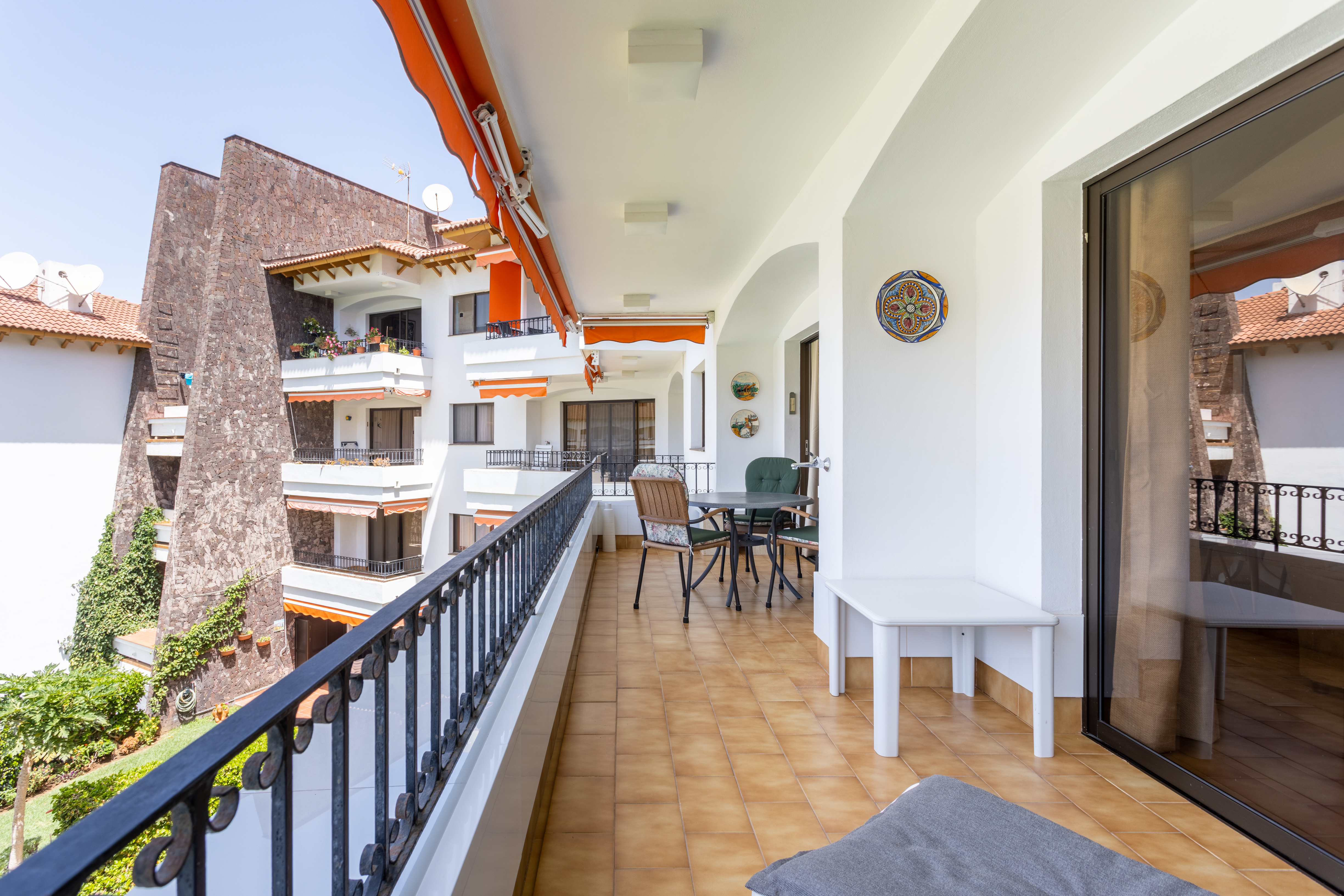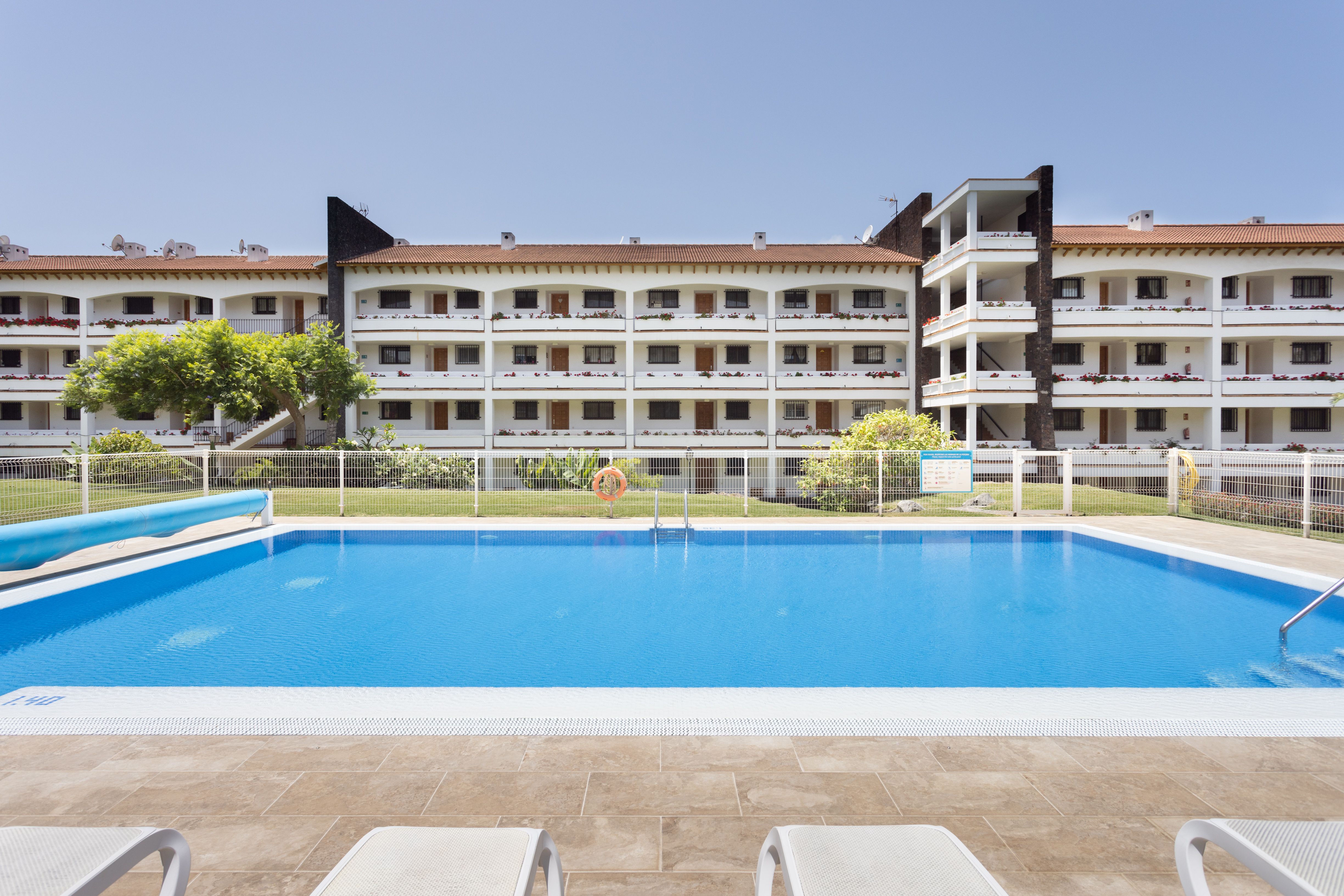Disfruta de una estancia relajante en este amplio apartamento de 120 m², ubicado en un exclusivo complejo residencial con total seguridad, en la prestigiosa zona del Botánico, en Puerto de la Cruz. A solo cinco minutos de supermercados, restaurantes y otros servicios, su excelente orientación ofrece vistas inmejorables al Teide y muchas horas de luz natural y sol.